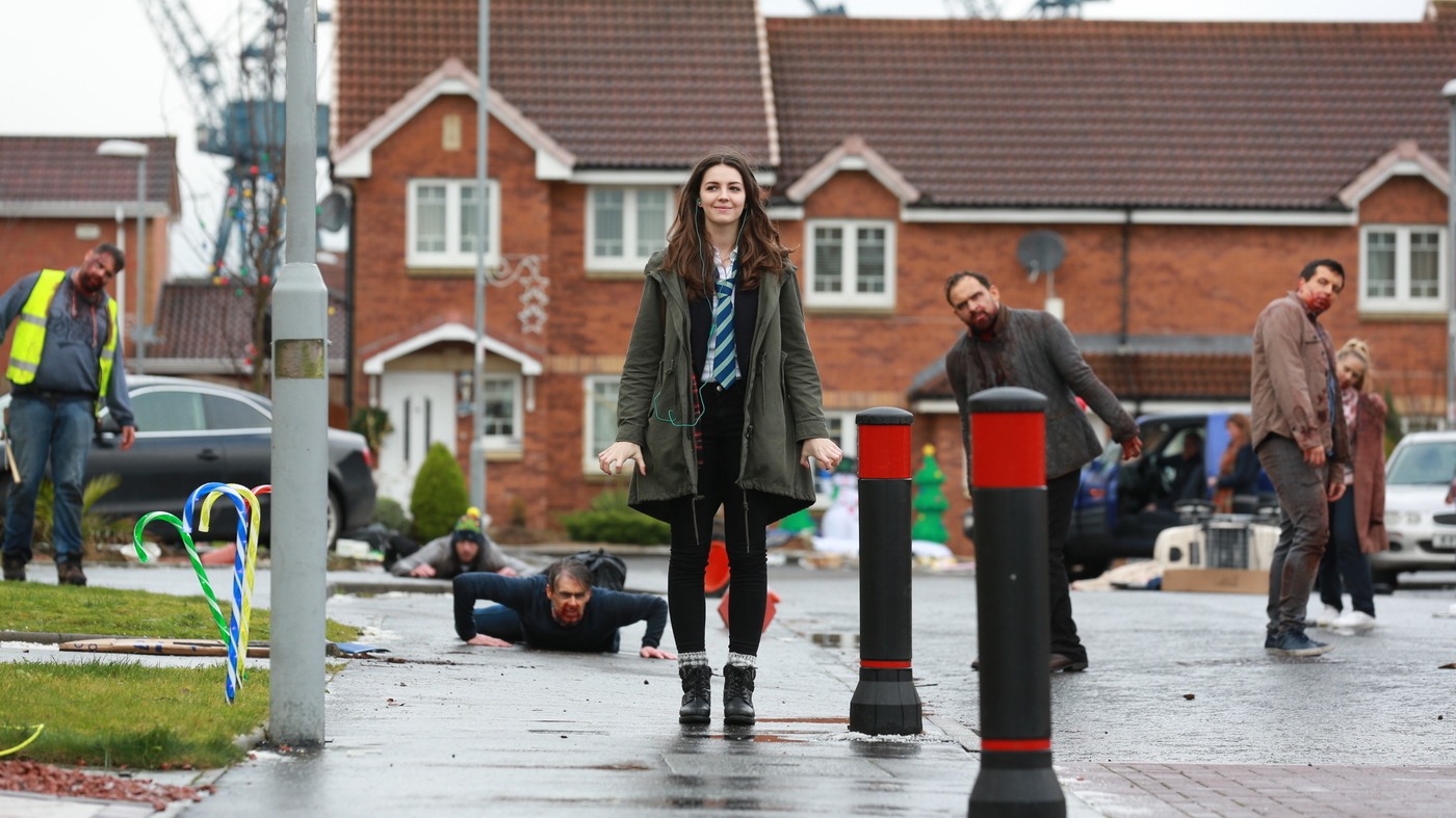Cast largely with then-unknown talent, only two out of the six primary actors in Anna and the Apocalypse have Wikipedia pages eight years after the film’s release, and the effect is that we can believe so much more easily that they are ordinary teenagers. Much of the film’s levity comes from upbeat songs which deliberately clash against the bleak surroundings – from the knock-off High School Musical track “Hollywood Ending” to action-man boast track “Soldier at War.” It’s mostly the kids doing the singing and dancing, because if there’s one thing Heathers and Mean Girls have taught us, it’s that teen angst is a solid pathway into the “feelings so strong they have to sing” approach to musical theatre.