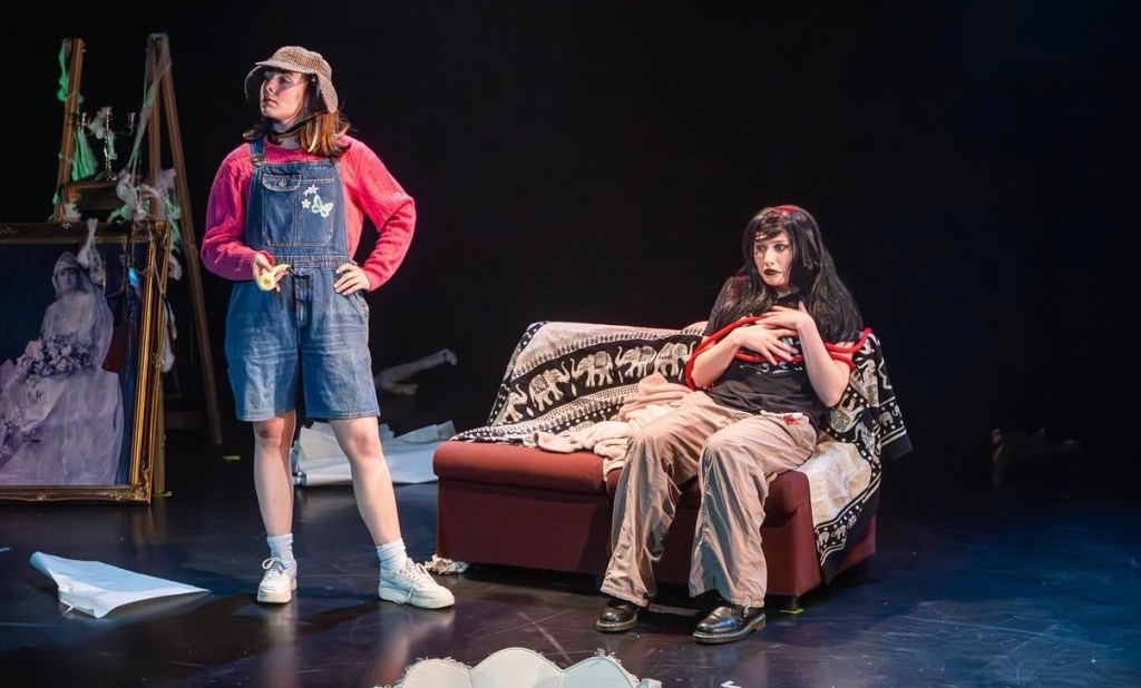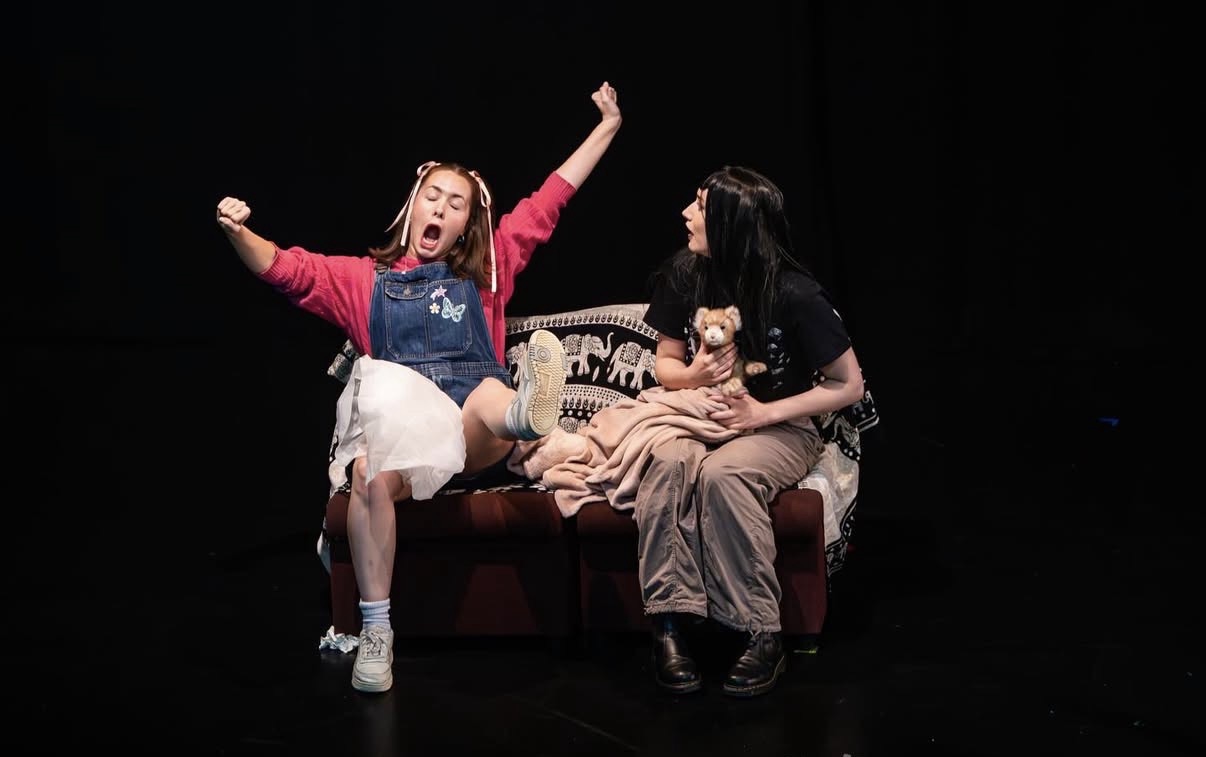 Mynard and Wallace bring tremendous energy to the roles of Georgia and Sam, respectively, which is particularly important when so few words pass between their characters. In fact, the only fully audible dialogue takes place not between Sam and Georgia, but between “Lucy” and “Emma,” as the play becomes increasingly meta-theatrical and suggests other reasons the pair may want to explore conflict in their art.